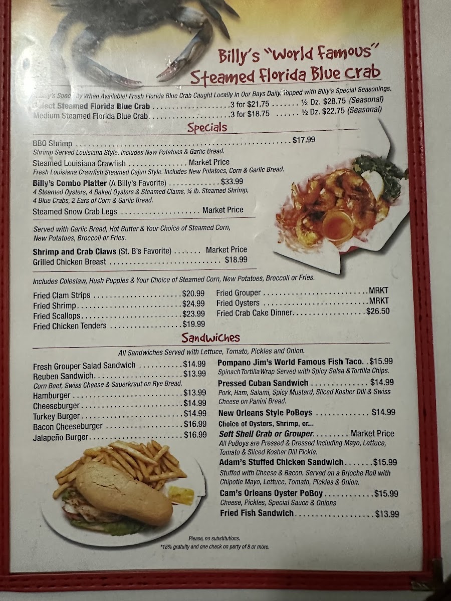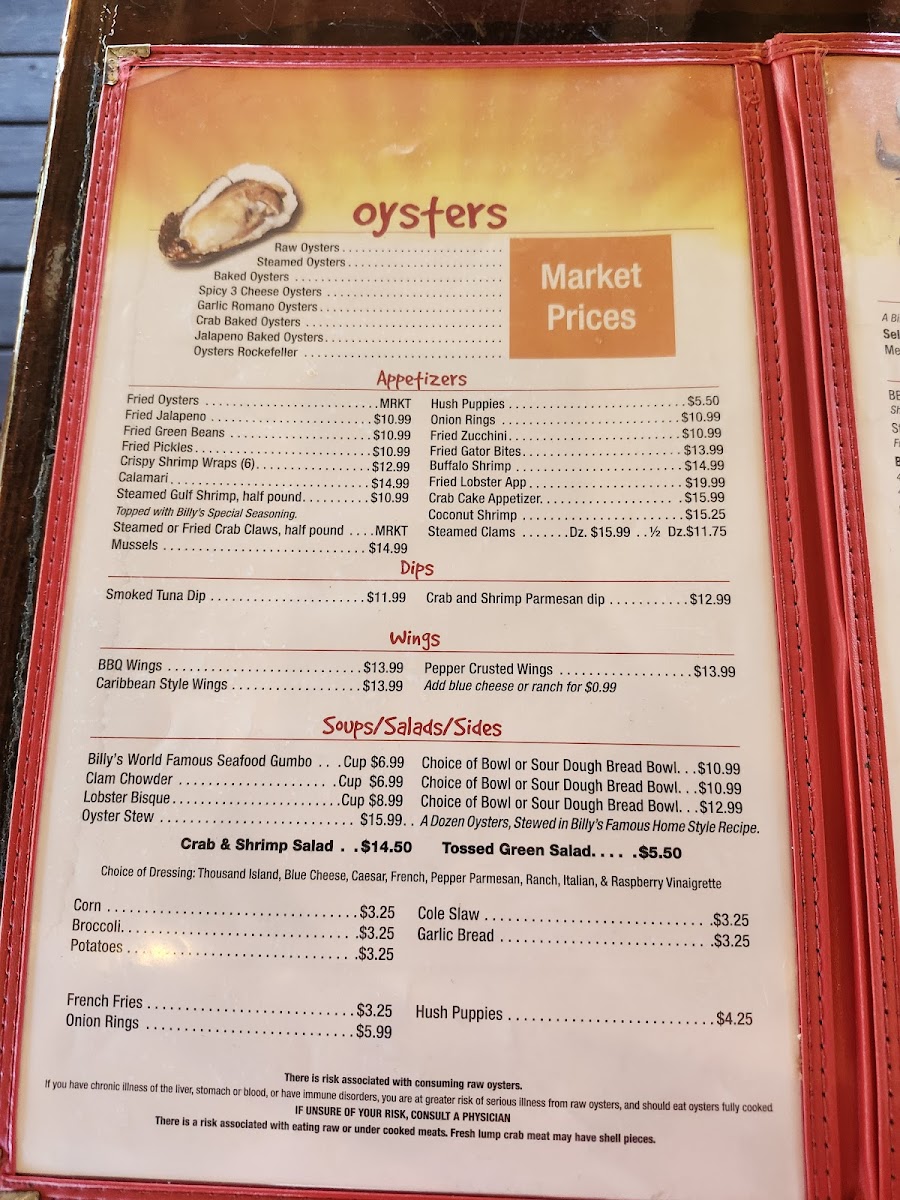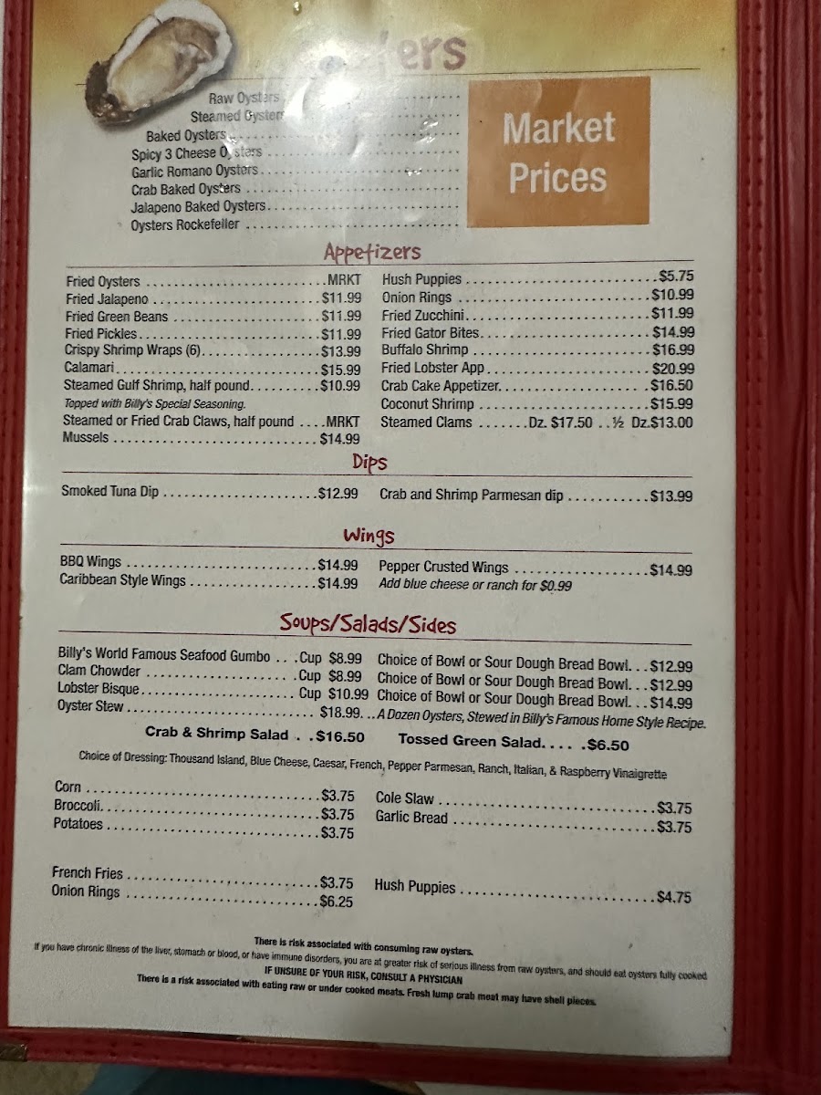 Welcome to Billy's Oyster Bar, a hidden gem located in sunny Panama City Beach, FL. This seafood haven boasts a menu that delights the senses with fresh catches and vibrant flavors. Dive into their appetizers, featuring renowned baked oysters, crispy fried crab claws, and a dazzling seafood platter that highlights the best of the ocean's bounty.